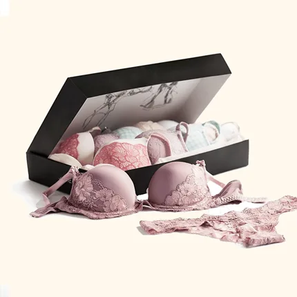 We use only high-quality materials, like sturdy cardboard and firm paperboard, because they keep their shape. This means the box will not bend or crush, so your bra’s cups stay perfectly formed. Inside, soft linings and custom-shaped inserts gently cradle the undergarments, holding them securely in place.